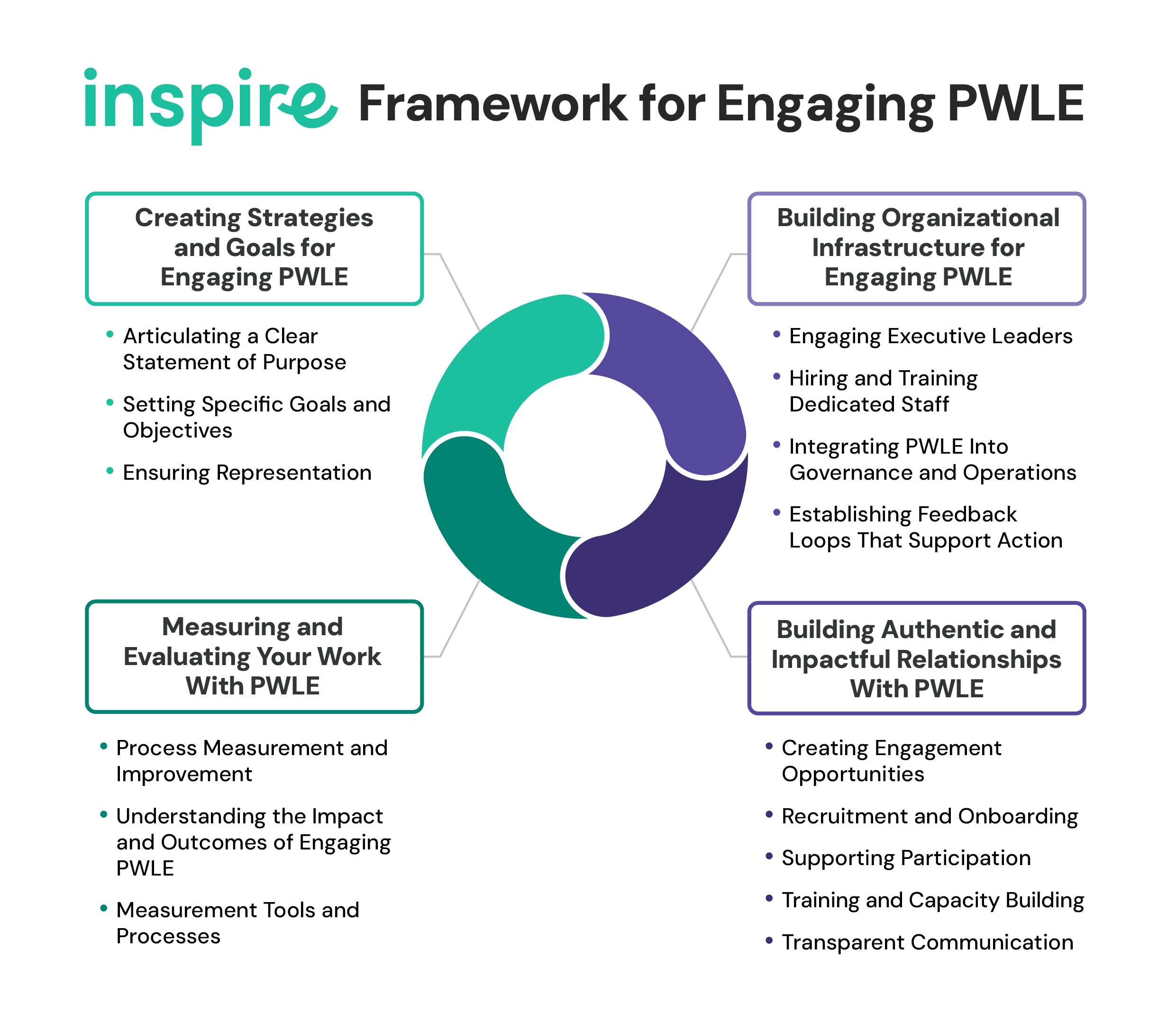 INSPIRE (Initiating National Strategies for Partnership, Inclusion, and Real Engagement) is a national partnership of organizations and people with lived experience (PWLE) working together to advance the practice of authentic community engagement (CE).